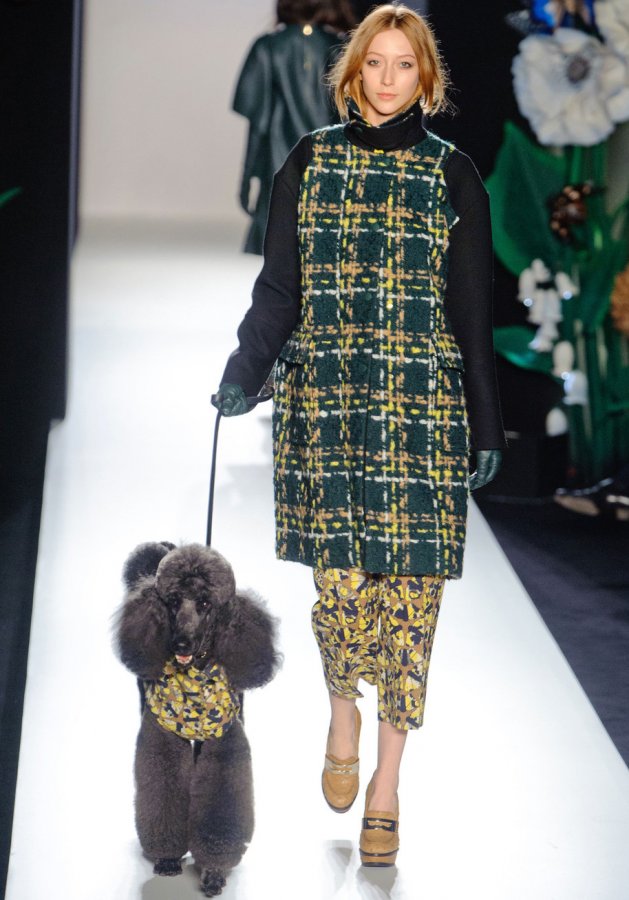 Et l'imprimé léopard préféré n'abandonne pas non plus ses positions ici. Lumineux, gai, il est particulièrement intéressant en combinaison avec un tissu en laine unie. Des matières imprimées multicolores avec un motif sont également utilisées, même du tissu avec de jolis pois mignons est présent sur le podium.
