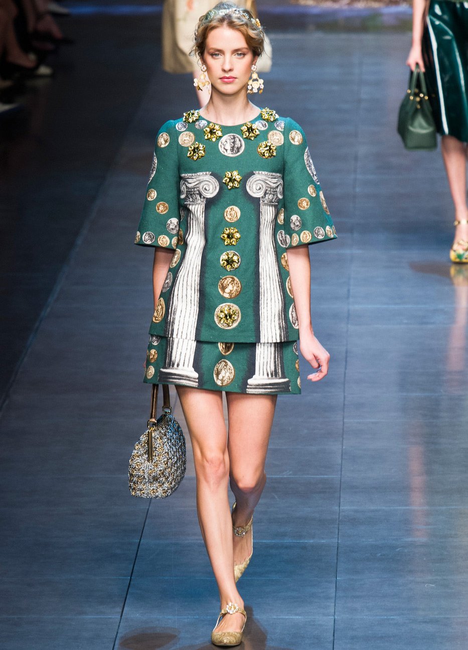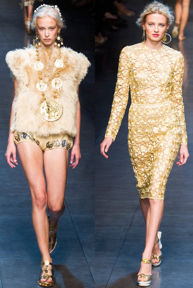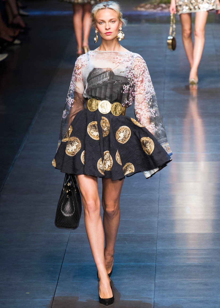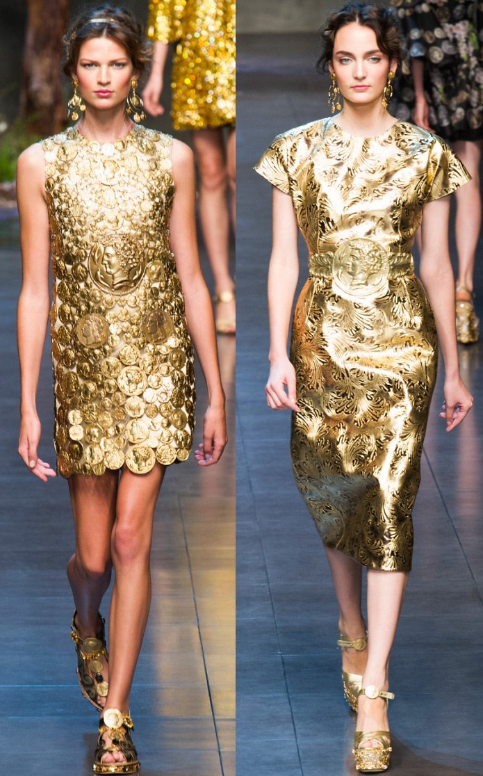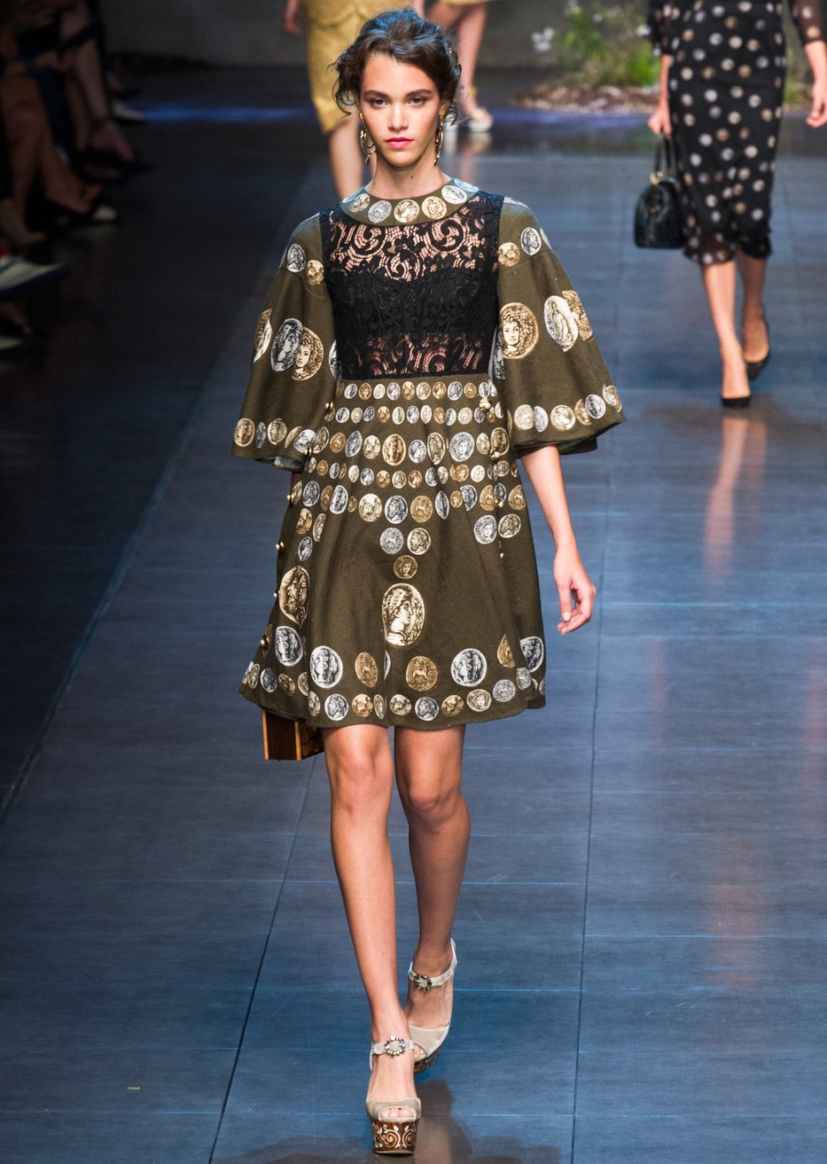 Des profils de grands et scandaleux empereurs ornent les filles modernes. Il y a beaucoup de pièces de monnaie dans la collection, elles sont présentes sous forme d'imprimés sur tissu, ainsi que sur des ceintures, des bijoux et des sacs.