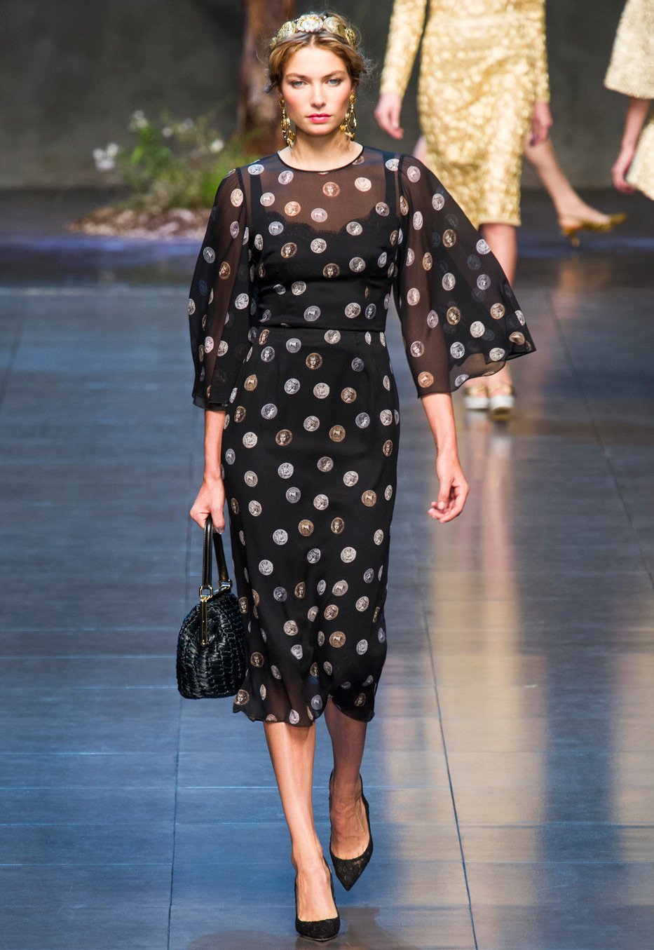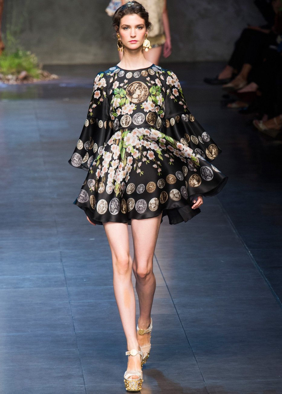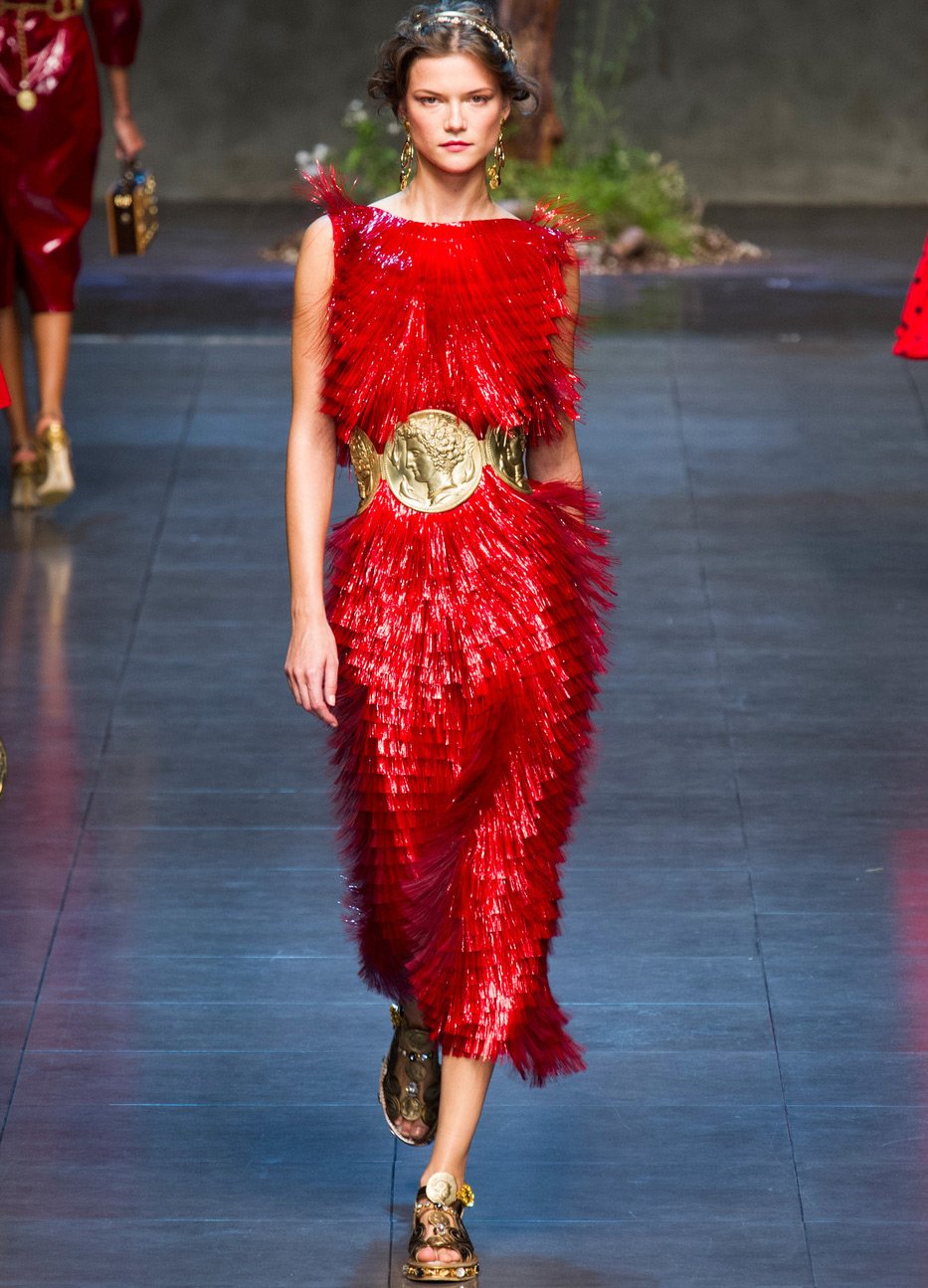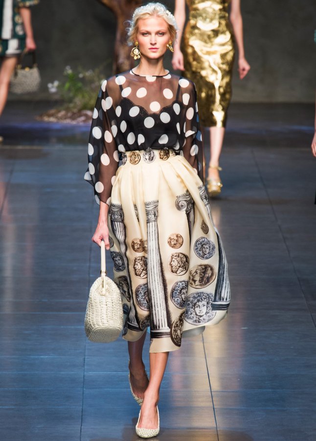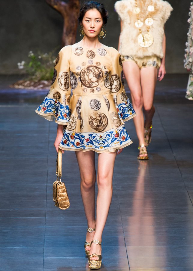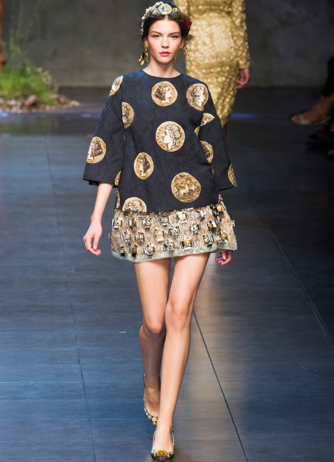 Des profils de grands et scandaleux empereurs ornent les filles modernes. Il y a beaucoup de pièces de monnaie dans la collection, elles sont présentes sous forme d'imprimés sur tissu, ainsi que sur des ceintures, des bijoux et des sacs.