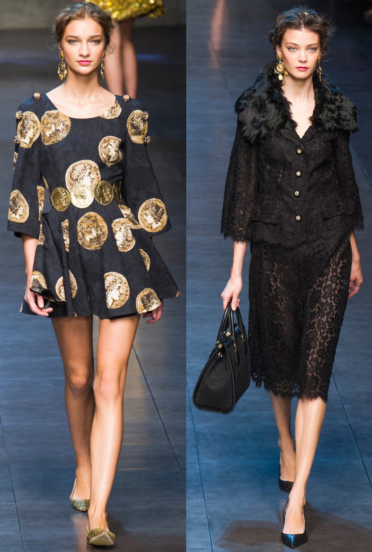 Les créateurs créent des silhouettes qui mettent l'accent sur la forme et les courbes du corps, tandis que, comme ils le croient eux-mêmes - "... le corps d'une femme ne devrait pas avoir l'air accessible". Lorsque Dolce et Gabbana créent une collection, elles partent d'un rêve, d'un fantasme. C'est probablement pourquoi chaque collection de créateurs "... est originale, audacieuse, elle a une idée et une image".