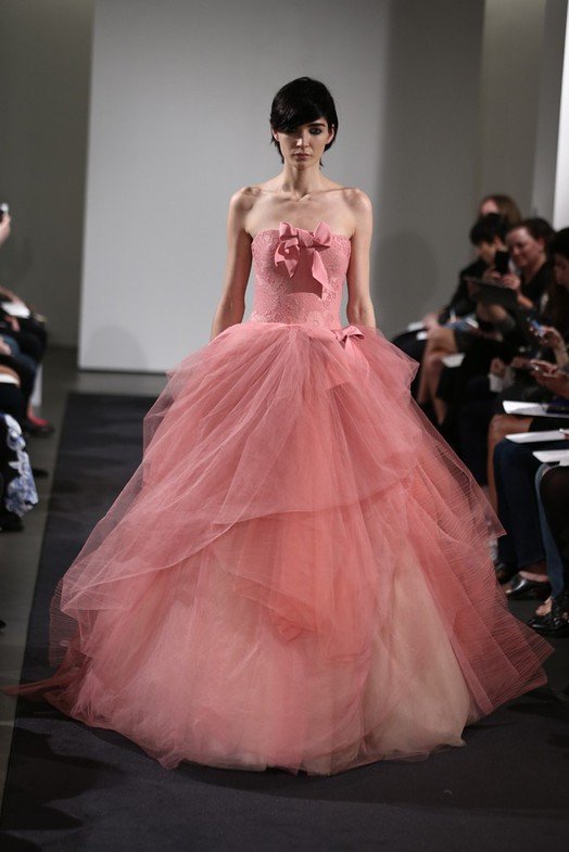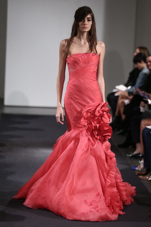 Vera Wang a décidé de créer des robes dans diverses nuances vives, dominées par les tons rose, pêche, lilas, corail et rouge. Il est important de noter ici qu'au départ, les robes de mariée n'étaient pas blanches - elles étaient rouges, et que beaucoup plus tard, le blanc est devenu le symbole traditionnel de la mariée.