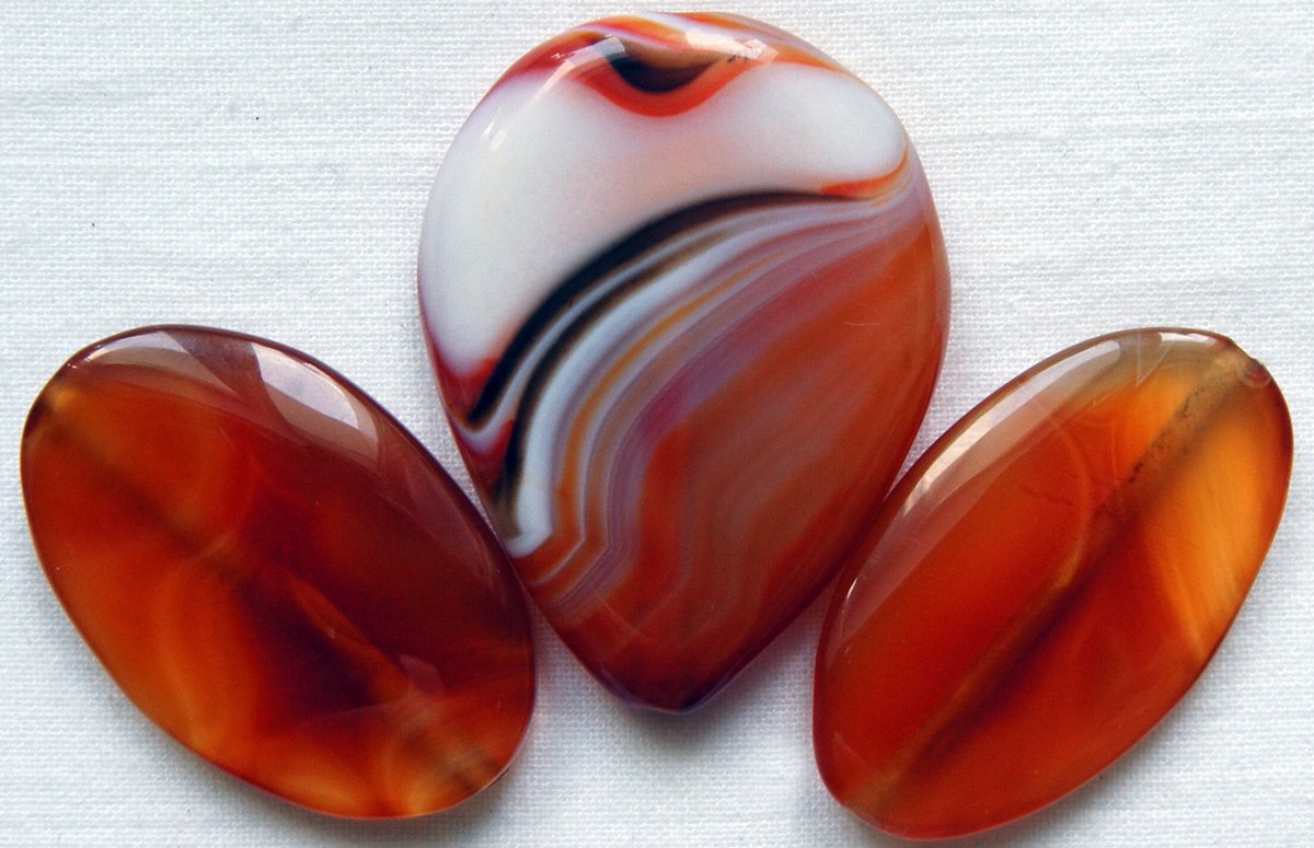 La calcédoine avec une couleur brun-rouge est appelée différemment. Ce sont des cornalines. Mais parfois, on les appelle aussi cornalines.