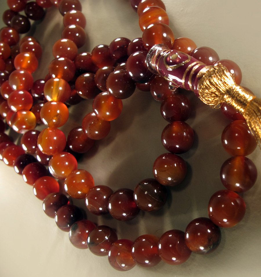La cornaline était très populaire parmi les les musulmans, en particulier les anneaux avec cornaline. Le nom du propriétaire ou un dicton du Coran était gravé sur les bagues, puis cette bague est devenue une amulette ou même une relique sacrée.Les musulmans croyaient qu'avec un anneau de cornaline, tous les désirs se réalisent. La tradition dit que Mahomet portait un tel anneau. Apparemment, la beauté de la pierre a également attiré son attention. Bien que ce ne soit que de la beauté ? Muhammad croyait que celui qui porte la cornaline est dans la joie et la prospérité. Et, malgré ce dicton, selon le témoignage de Biruni, Mahomet, après la prise de La Mecque au 7ème siècle, a ordonné de briser la statue de l'idole de Hubal, sculptée dans la cornaline, qui était le plus grand de tous les produits de cornaline connus.