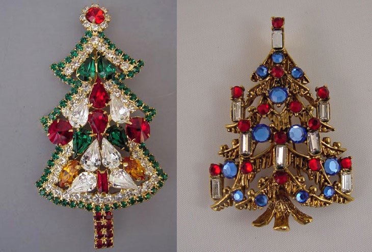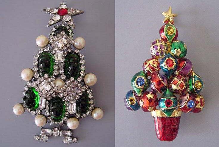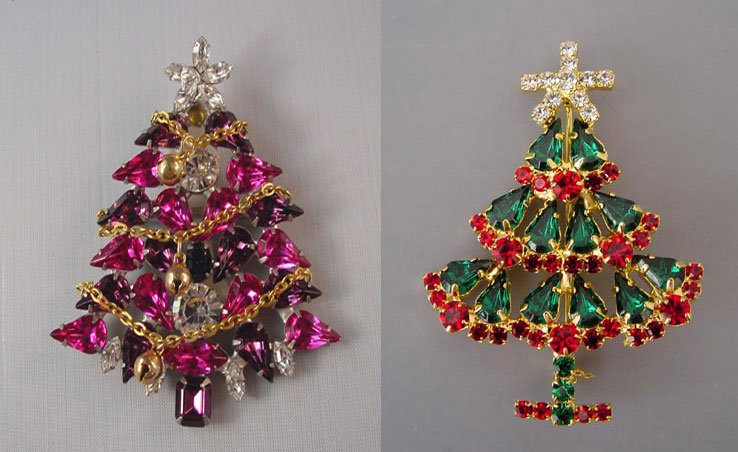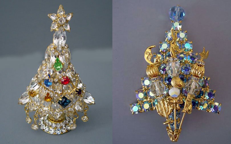 Jetez un œil à ces photos, qui montrent des décorations vintage pour le Nouvel An et Noël. Ici, vous pouvez voir des bonhommes de neige, des étoiles, des anges et, bien sûr, de nombreux arbres de Noël étincelants. Une telle broche ou pendentif sera un excellent ajout à votre look de fête.
