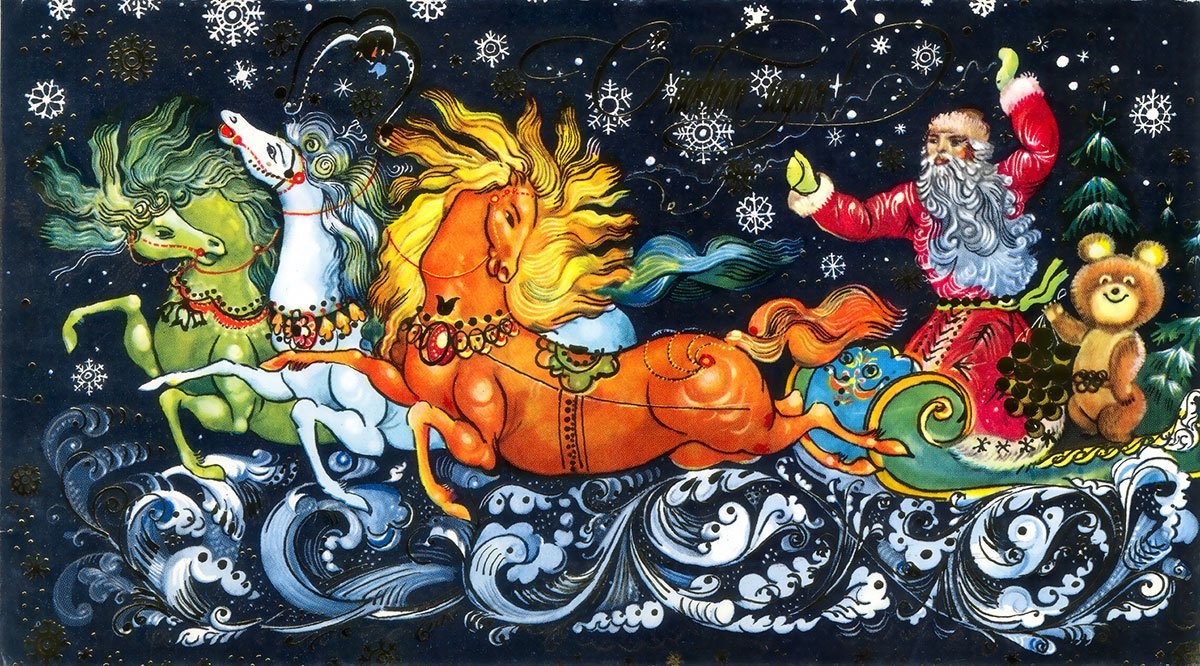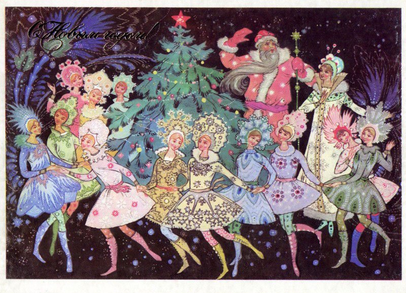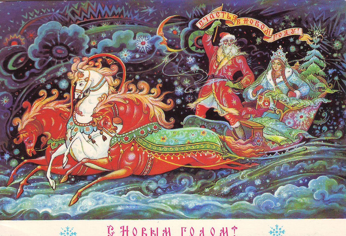 Mais comme vous le comprenez, ce n'est pas pour ces mots que je crée cette publication, je voudrais partager avec vous, mes chers lecteurs, les cartes du Nouvel An de la période soviétique, réalisées dans le style traditionnel russe, où Ded Moroz est un vrai Ded Moroz, pas le Père Noël.