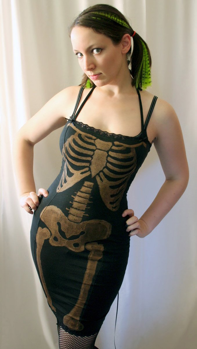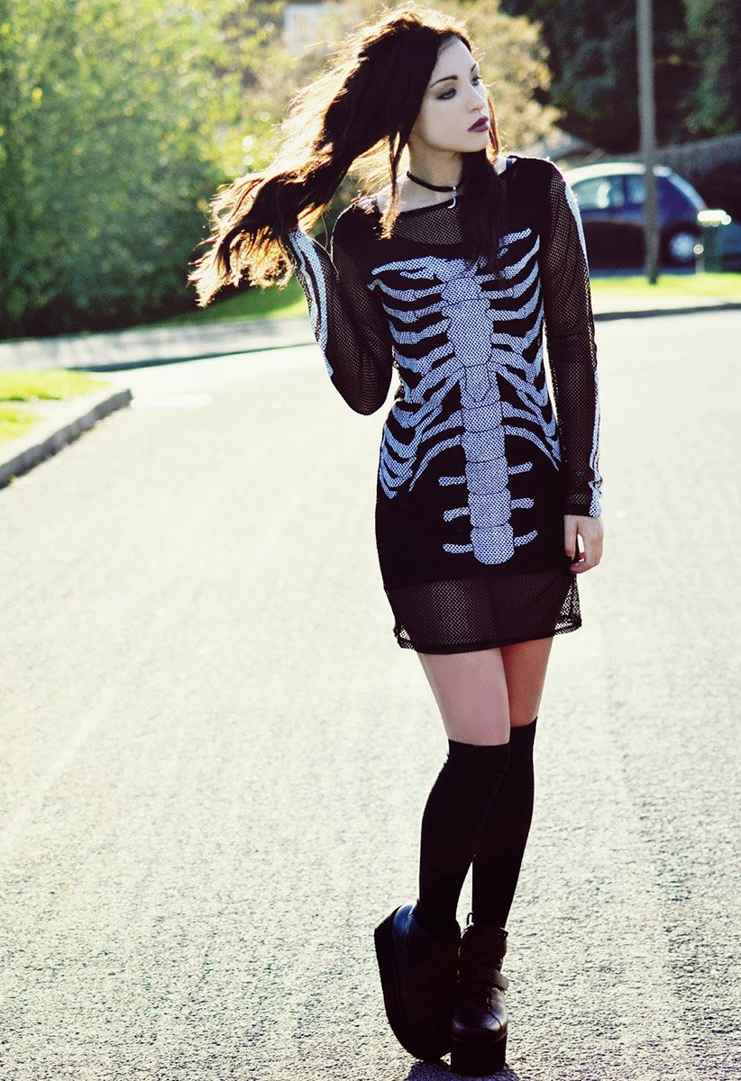 C'était en 1938, alors de telles robes ne pouvaient être portées qu'au carnaval, et aujourd'hui, pour certaines, les tenues de la mort sont acceptables pour un usage quotidien. Par exemple, les filles gothiques porteront volontiers une telle robe.