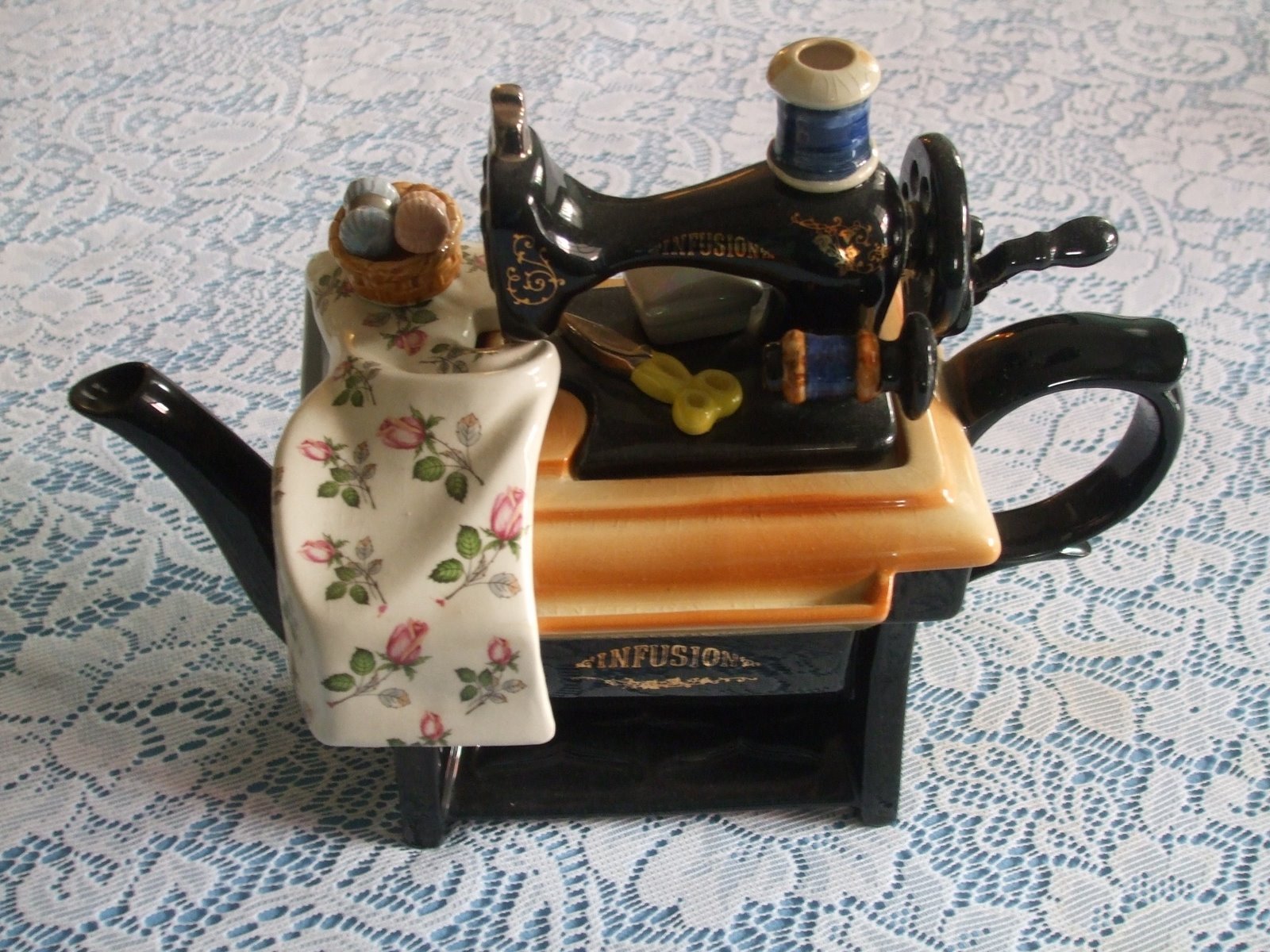 Il peut s'agir d'une boîte pour divers accessoires de couture ou d'une boîte à bijoux. Peut-être une théière, un réveil ou autre chose. Jetez un œil aux photos de ces machines à coudre, elles ne sont pas mignonnes !