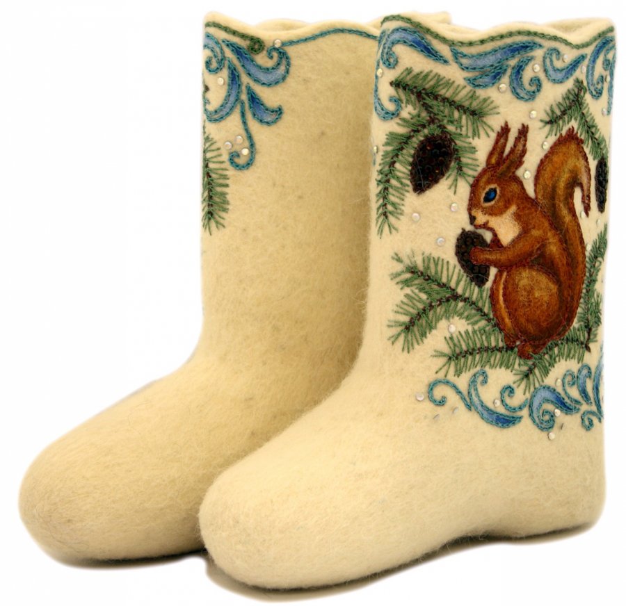 La patrie des vraies bottes en feutre est considérée comme la ville de Myshkin, dans la province de Yaroslavl, dont les artisans ont été les premiers à rouler des bottes entièrement, avec un bootleg. De la région de Yaroslavl, les bottes en feutre ont commencé à se répandre dans toute la Russie, et bientôt chaque village avait ses propres artisans pour fabriquer des bottes en feutre, et des usines entières pour la production de bottes en feutre ont commencé à être construites dans les villes.