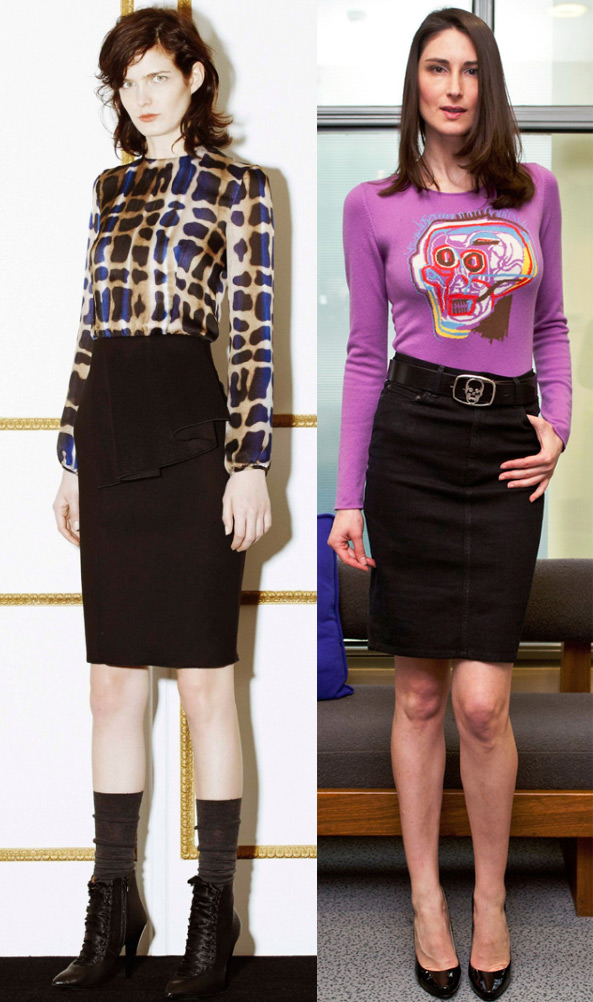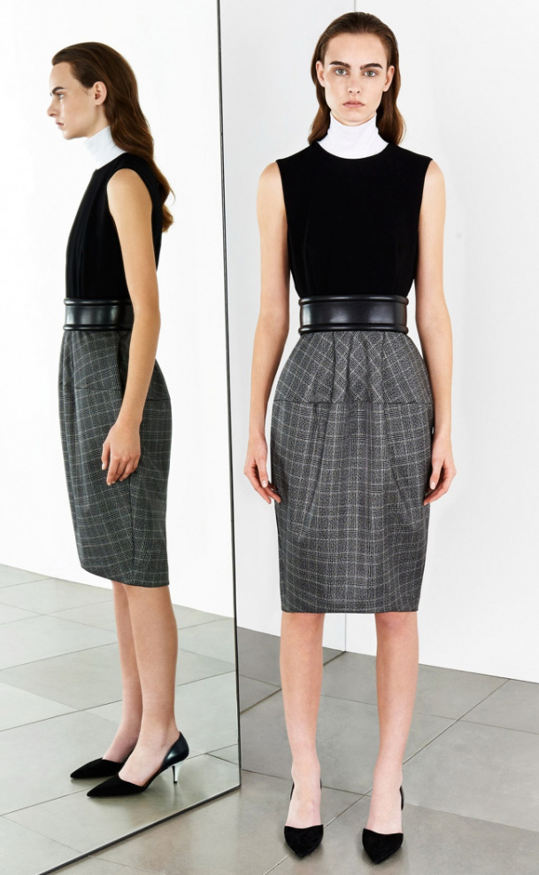 Dans les collections de créateurs de la saison 2025-2026, il existe une grande variété de jupes droites moulantes, y compris la version classique de la jupe crayon. La jupe crayon noire est une jupe à porter au bureau. Par exemple, les créateurs de Lucien Pellat Finet ont préféré ces jupes dans leur collection. Une jupe crayon signifie des chaussures à talons, sinon elle perdra de son charme.
