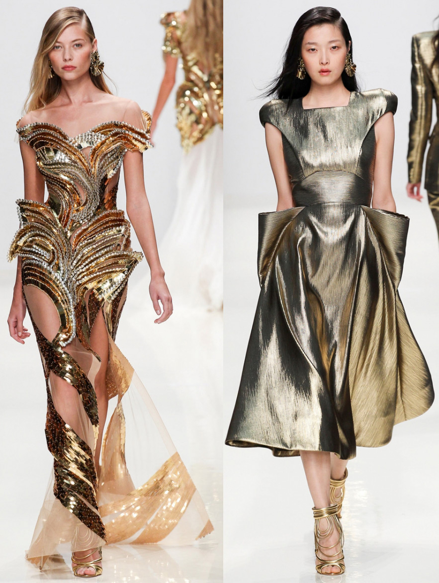 Robes à paillettes dorées de Valentin Yudashkin