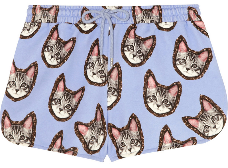Certains shorts sont agrémentés de dentelle, tandis que le modèle Markus Lupfer règne en maître chats.