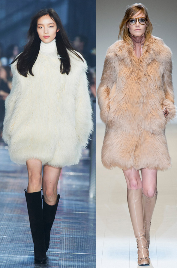 En gros c'est une silhouette libre et droite avec une longueur qui permet de faire n'importe quel choix. Bien que de longs manteaux de fourrure aient été trouvés sur le podium, la plupart des créateurs préfèrent néanmoins la longueur légèrement en dessous ou au-dessus des genoux, ainsi que toutes sortes d'options raccourcies pour les manteaux de fourrure.