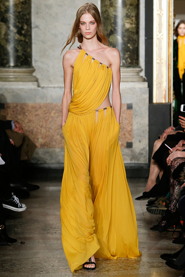 Terminer l'analyse des collections automne-hiver 2025-2026, stylehub.techinfus.com axé sur les robes jaunes et oranges. L'automne et l'hiver ne nous gâtent pas avec un soleil éclatant, et l'orange et le jaune sont exactement les couleurs qui personnifient le soleil.