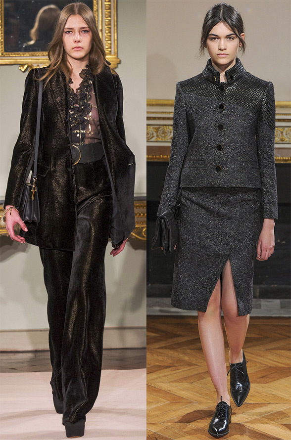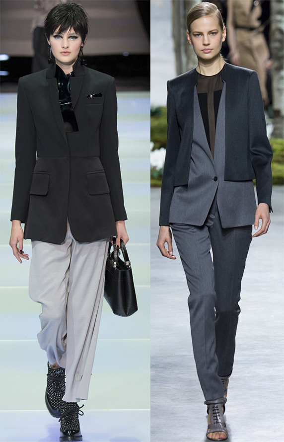 Costume dans la version veste (veste) - le pantalon s'est avéré très populaire, ainsi que dans la version avec jupe. Regardez les modèles de la collection de Blugirl, Paul Smith, Armani, Hugo Boss.
