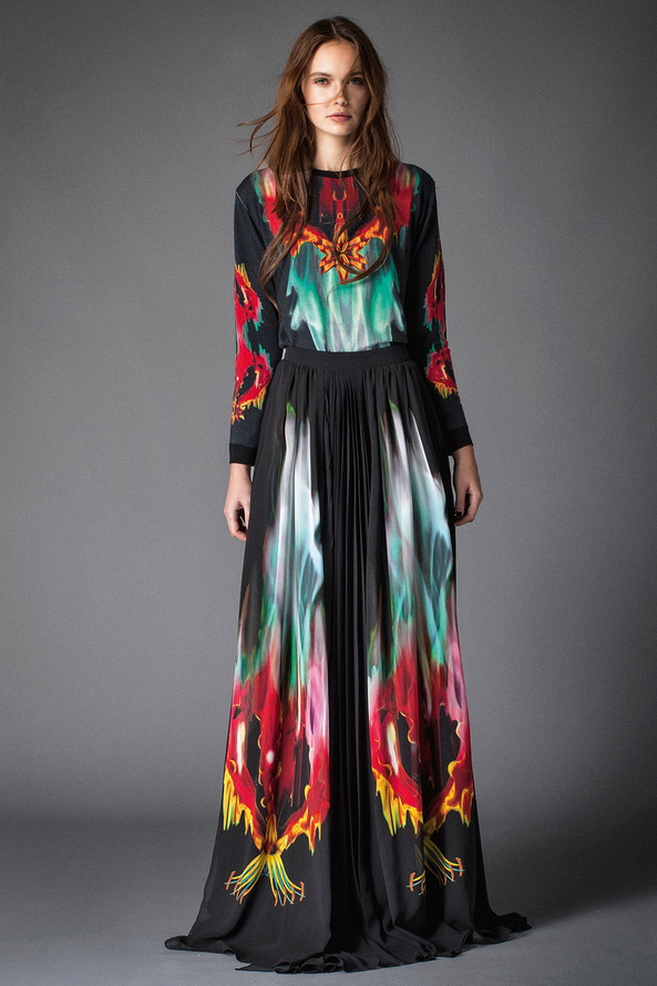 La collection Just Cavalli Pre Fall 2026 contient des éléments de looks des années 1970, ainsi qu'un peu de gothique. Dans le même temps, les filles romantiques ne sont pas oubliées, il y a un costume rose, un manteau de fourrure bleu, des robes aux imprimés floraux et baroques dans la collection.