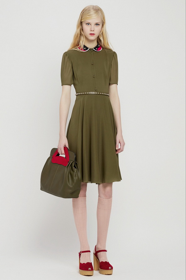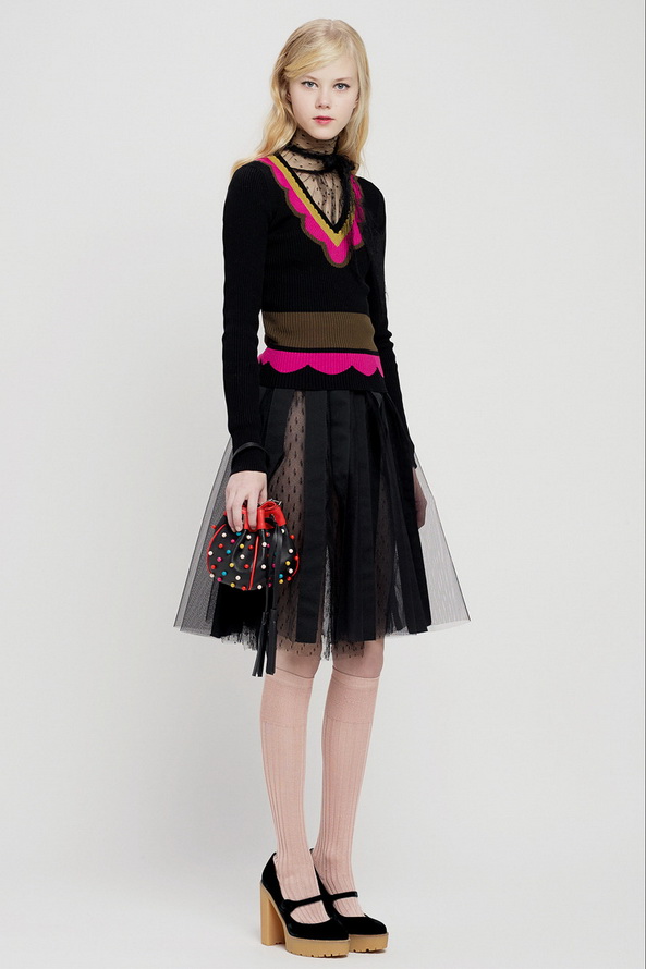 La nouvelle collection pré-automne hors saison pour l'automne et l'hiver de Red Valentino est très riche, nous pouvons voir ici diverses robes et jupes, chemisiers en mousseline de soie, organza, dentelle, cuir et autres matériaux. Vieillies dans le style des années 60, les jupes courtes et les robes trapèze sont décorées de divers imprimés floraux et pop art.