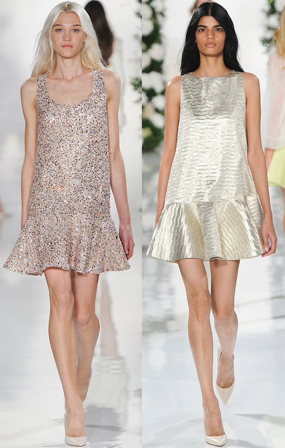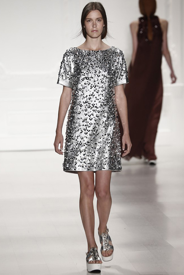 De nombreuses maisons de couture proposent des robes printemps/été 2026 à paillettes pour diverses raisons. Certaines robes sont ornées de cristaux, de paillettes ou d'autres éléments réfléchissants, tandis que dans d'autres, le tissu lui-même scintille et scintille.