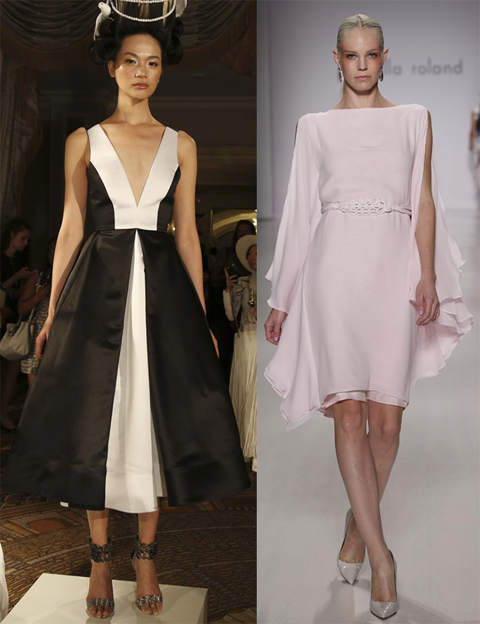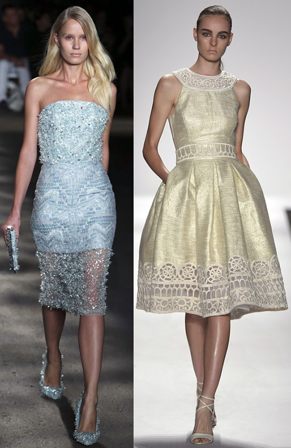 Le décolleté, en plus du petit ovale classique, tend vers un décolleté en V profond. Dans une grande variété de robes - bustiers, on les retrouve dans presque toutes les collections, et classiques intemporels - robes de cocktail, que l'on peut voir dans les collections de Dennis Basso, Barbara Tfank et bien sûr dans les collections Lela Rose.
