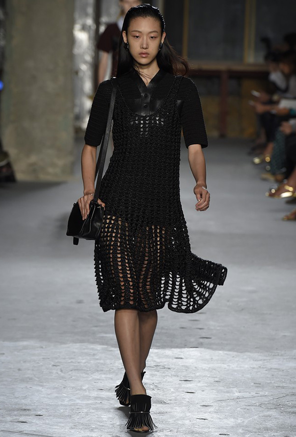 En plus des robes tricotées traditionnelles, nous pouvons voir dans les collections de plus en plus de robes avec des tissages de divers matériaux allant du cuir véritable et du daim à divers synthétiques, plastiques et même de fines plaques de métal. Il existe des robes combinées, où une partie de la robe est tricotée et l'autre partie est décorée de divers tissages, dentelles, franges.