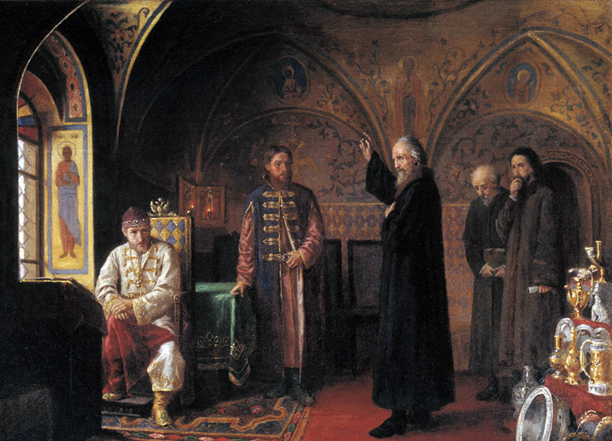 En 1570, les ambassadeurs allemands, se régalant à Ivan le Terrible, notèrent que le tsar et son fils Ivan Ivanovitch étaient vêtus de luxueuses tenues de velours ornées de pierres précieuses et de perles. Ivan le Terrible et son fils étaient tous deux équipés pour la guerre d'un luxe hors de toute mesure. Colliers - des "colliers" faits de matériaux coûteux, brodés de soie, décorés de pierres précieuses et de perles ont été cousus aux vêtements de dessus. Les bonnets étaient en velours. Le tsar Ivan le Terrible lui-même en avait plusieurs. Les bonnets garnis de différentes fourrures étaient en velours vénitien.