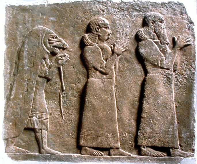 Le roi accepte les signes de révérence. Relief assyrien de Nimrud, détail. VIIe siècle av. NS.