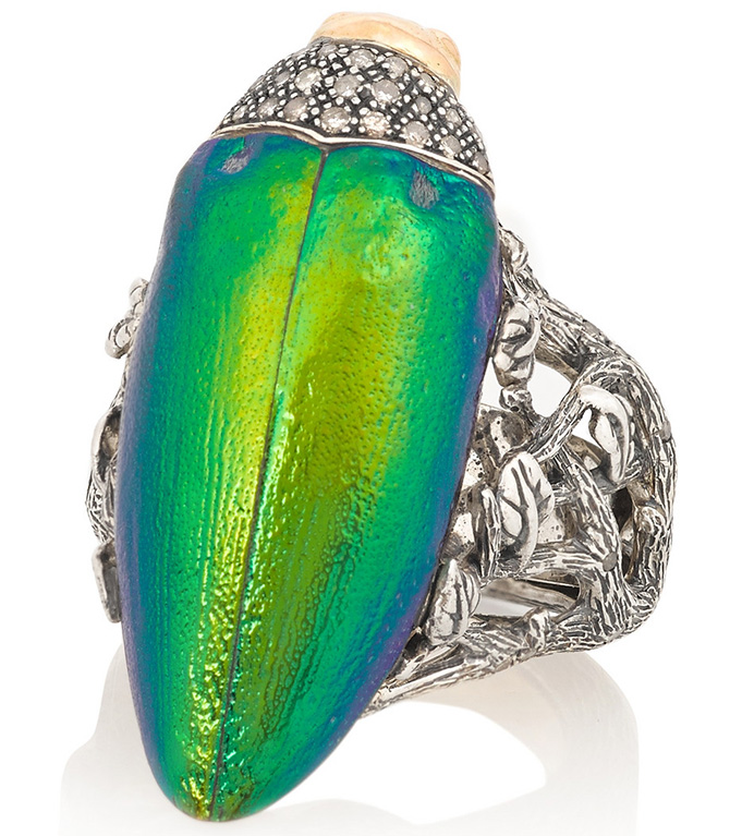 En plus des produits en os, des bagues en pierres semi-précieuses... Par exemple, la bague Finds est en agate. En plus des bagues en pierre, Finds propose des produits en bois, qui à première vue peuvent être considérés comme des bijoux bon marché, mais ce n'est pas le cas. La bague en bois Finds contient un insert en or 18 carats et est sertie de diamants, de sorte que sa valeur dépasse les bijoux ordinaires.