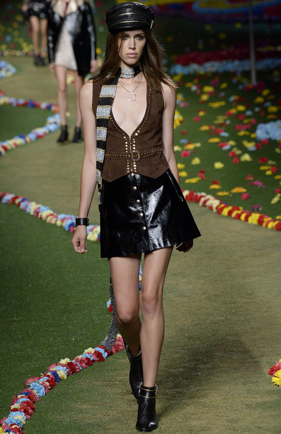 Printemps et été 2026 une variété de jupes en cuir seront pertinentes, mais en général elles ont toutes une longueur assez courte, et cela s'explique par la praticité habituelle. Les jupes taille haute sont pertinentes. Des jupes perforées peuvent être vues dans certaines collections.