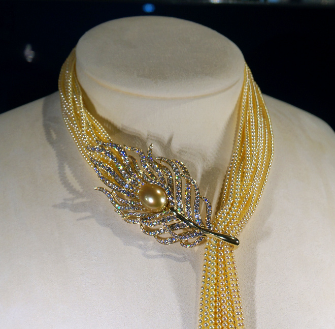 Les magasins vendaient non seulement jolis bijoux en perles, mais aussi des perles individuelles que vous pouvez acheter en n'importe quelle quantité et fabriquer vos propres bijoux de votre propre conception. Il y avait aussi un restaurant et divers spectacles aquatiques. À partir de perles, comme d'un designer pour enfants, Mikimoto a commencé à collectionner des objets - des copies de temples et de monuments célèbres, des oiseaux, des papillons, des statues de Bouddha et bien plus encore. C'étaient des produits de perles extraordinairement beaux faits de perles fines et de haute qualité. Les jolis « bibelots » étaient très chers.