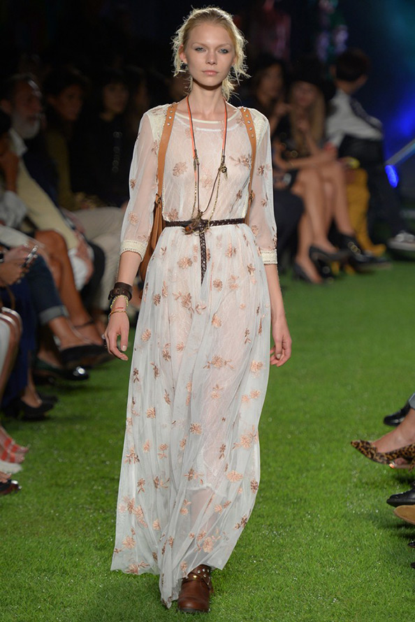 Certains robes à la mode n'ont qu'une jupe transparente. Des modèles chics de telles robes peuvent être trouvés dans les collections de Laura Biagiotti, Barbara Casasola, Mary Katrantzou et nous voyons des robes particulièrement luxueuses chez Marchesa.