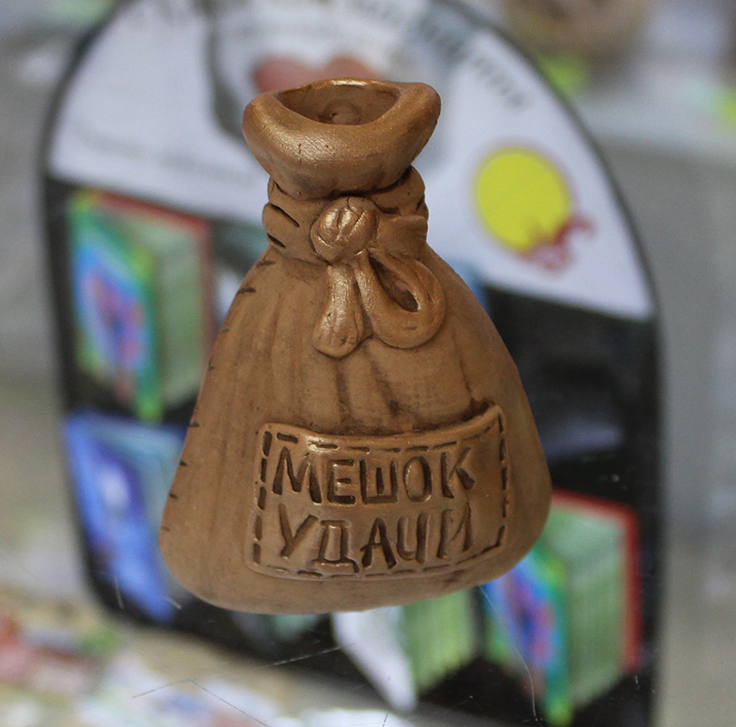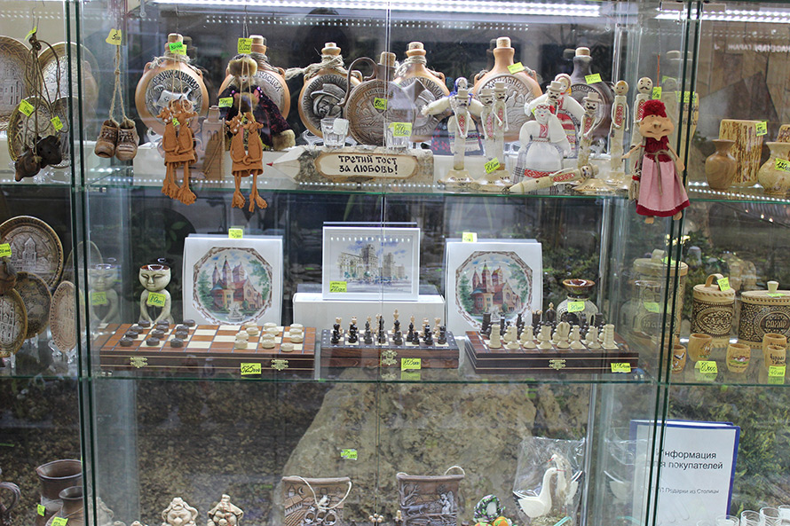 En longeant le centre commercial Stolitsa, près de la gare, près de l'église rouge et de la place de l'Indépendance, c'est là que les touristes vont définitivement, je suis tombé sur le Magic Shop. La boutique, qui était cachée tout en bas, près de l'escalator. Le magasin est comme un magasin - des aimants avec l'inscription ennuyeuse Minsk, des poupées gigognes russes (si l'Italien n'atteint pas Moscou, il achètera de toute façon une matriochka), des perles et des bracelets en pierres diverses. Mais si vous regardez de près, il y a des souvenirs et des plus intéressants - des amulettes en paille et en argile, des poupées d'amulettes.