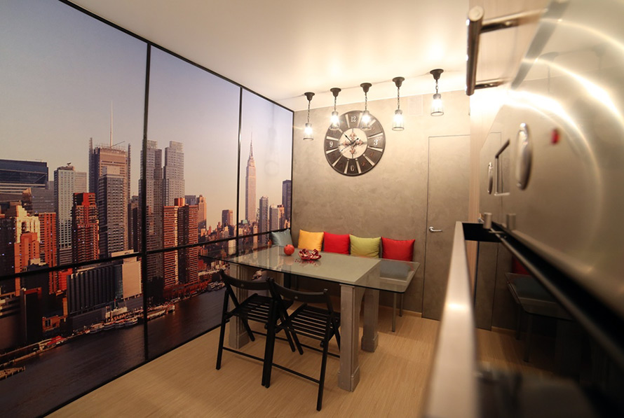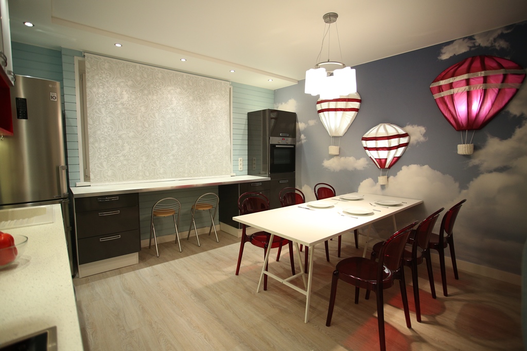 Si l'espace cuisine est combiné avec d'autres pièces et comporte plusieurs fonctions, vous ne pouvez pas vous passer de meubles multifonctionnels. L'architecte Natalya Guseva recommande d'utiliser des meubles transformateurs. Par exemple, un lit surélevé et caché dans un placard pendant la journée, ou une table qui peut facilement être retirée d'un élément de cuisine.