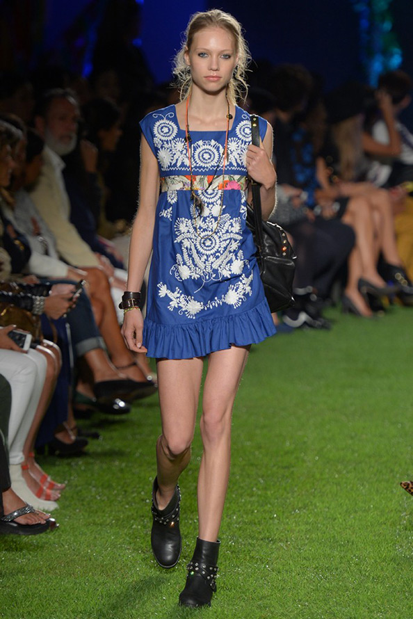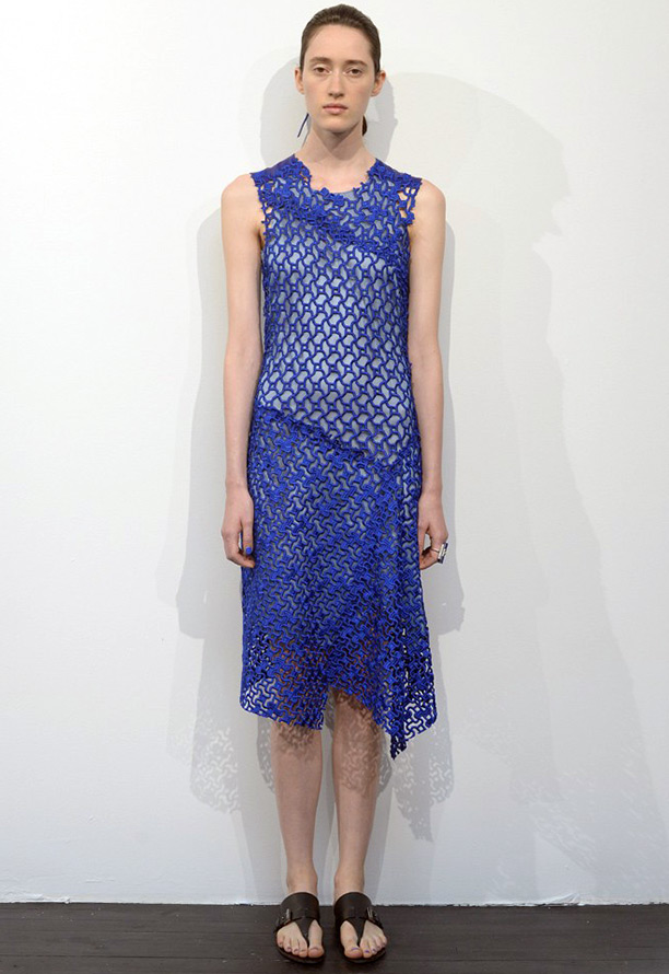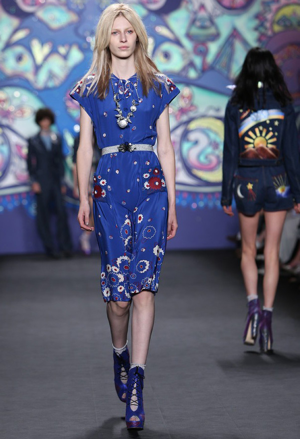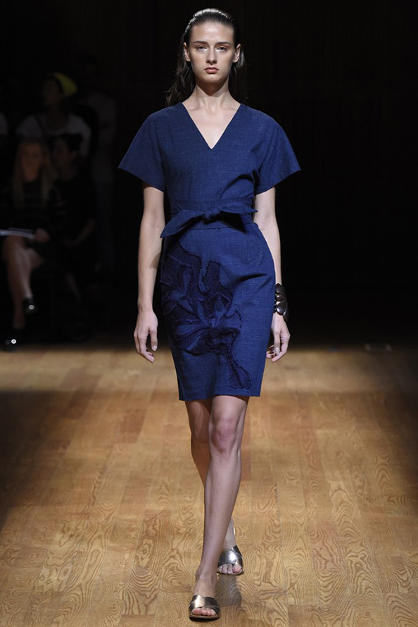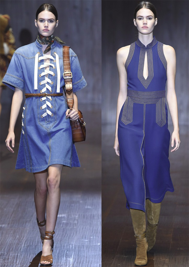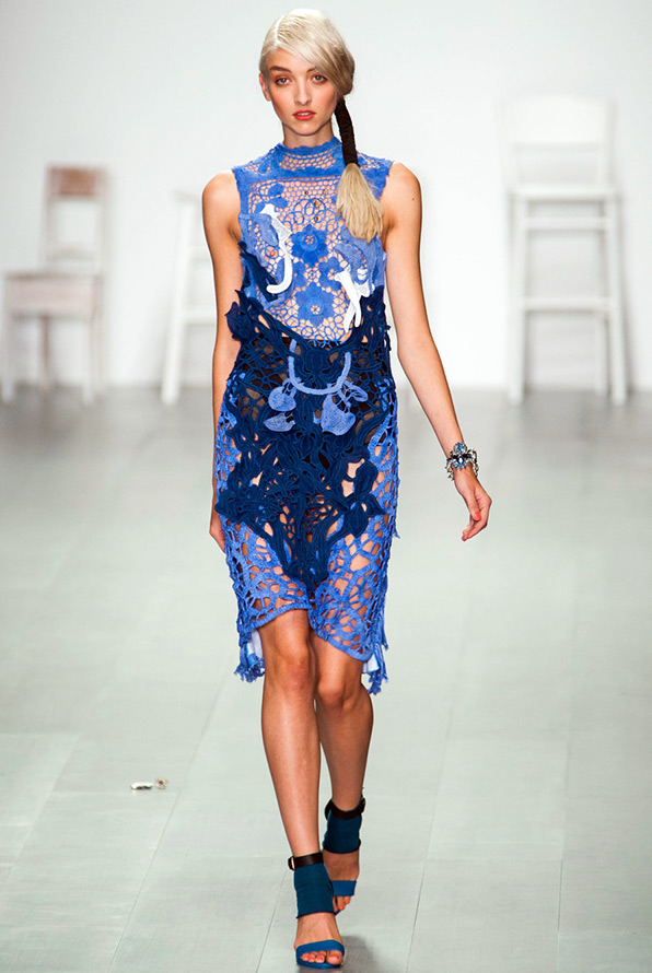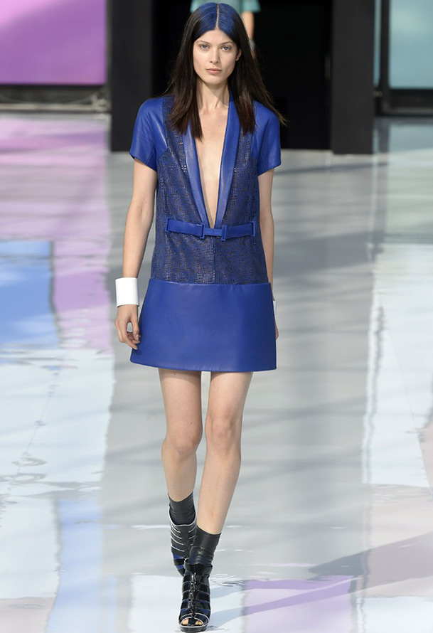 Et Alberta Ferretti, Alexis Mabille, Jenny Packham proposent des robes bleues délicates, car le bleu est essentiellement le même bleu, du fait que le bleu n'est pas la couleur principale ni même intermédiaire. Le cyan est une nuance de bleu qui s'estompe progressivement en nuances d'autres couleurs.