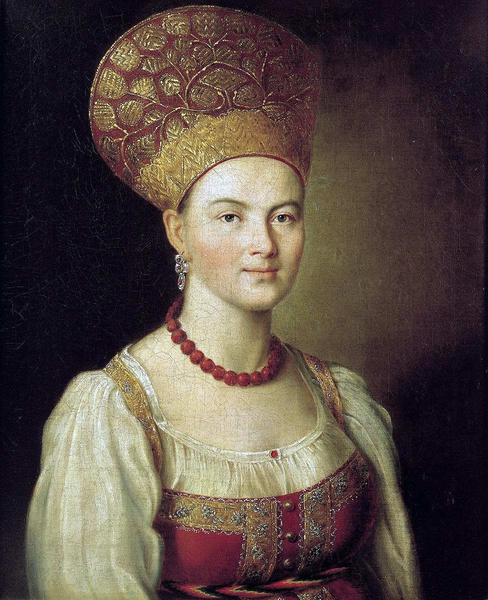 L'image poétique d'une femme russe vêtue de la robe de la province de Moscou est un portrait de l'artiste serf, le comte Sheremeev Ivan Argunov. Le portrait a été peint en 1784.