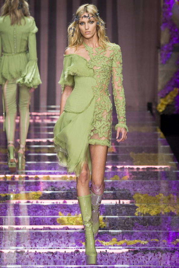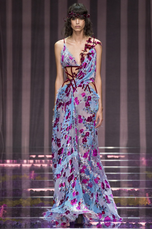Ainsi, la collection couture Atelier Versace peut être considérée comme une sorte de retour aux valeurs traditionnelles. En tout cas, la nouvelle fille de Versace n'est pas dénuée de confiance en elle, elle sait toujours ce qu'elle veut et aspire au meilleur et au plus luxueux. C'est juste que maintenant au lieu d'une femme prédatrice - un chat, elle s'est transformée en une belle nymphehabillés de tissus translucides coûteux.