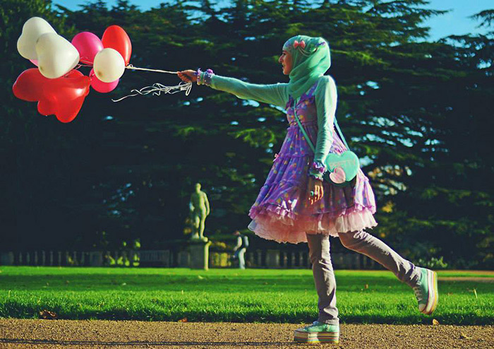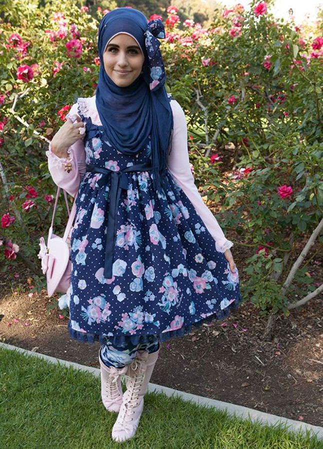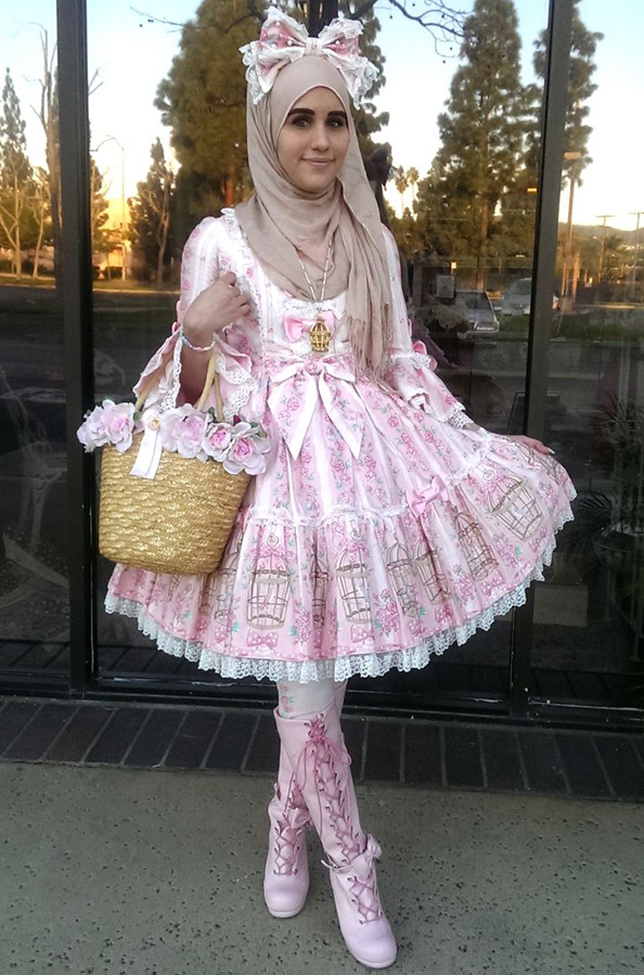 Les filles orientales ont ajouté un peu de pudeur à l'image de Lolita et bien sûr se sont couvertes la tête d'un foulard. Dans les pays où règne l'islam radical et les islamistes règnent, c'est inacceptable, mais dans le reste du monde islamique, où l'islam prend une forme laïque plus douce, les Lolitas se sentent assez à l'aise, car il faut ajouter un peu d'imagination et on peut tout fermer les parties séduisantes du corps, et couvrez ainsi vos cheveux et vous êtes l'innocence même.
