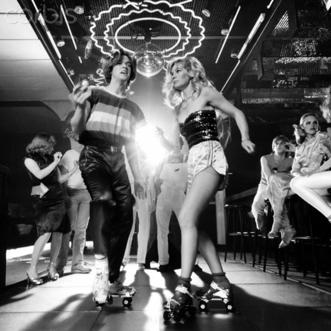 Discothèque - un style qui, comme aucun autre style, est associé aux années 1970, le style de la seconde moitié des années 1970. Les vêtements disco comprennent des chemises en polyester colorées, des robes de cocktail des années 1950, des robes de grand-mère à fleurs ou de soirée avec des fentes extra longues, des bodys en lycra, des débardeurs, des shorts très courts en lurex argenté, de vieilles chemises en dentelle et des jeans brillants. Et comme décoration pour un corps de plus en plus exposé - l'art corporel.