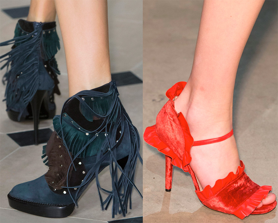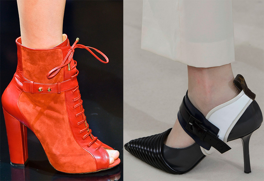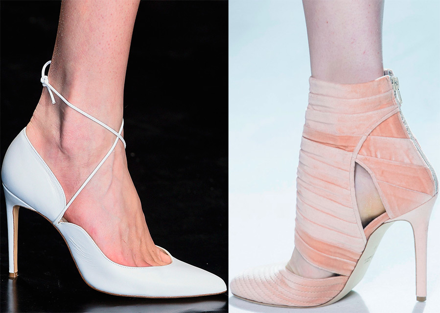 Chaussures à bout ouvert, et pas seulement les chaussures, mais aussi les bottines et les bottes peuvent avoir un bout légèrement ouvert - regardez dans les collections de Vionnet, Francesco Scognamiglio, Rodarte, Elie Saab ... Le design qui ouvre le bout des orteils est utilisé dans différents styles , mais le plus souvent ce sont des modèles à talons hauts...