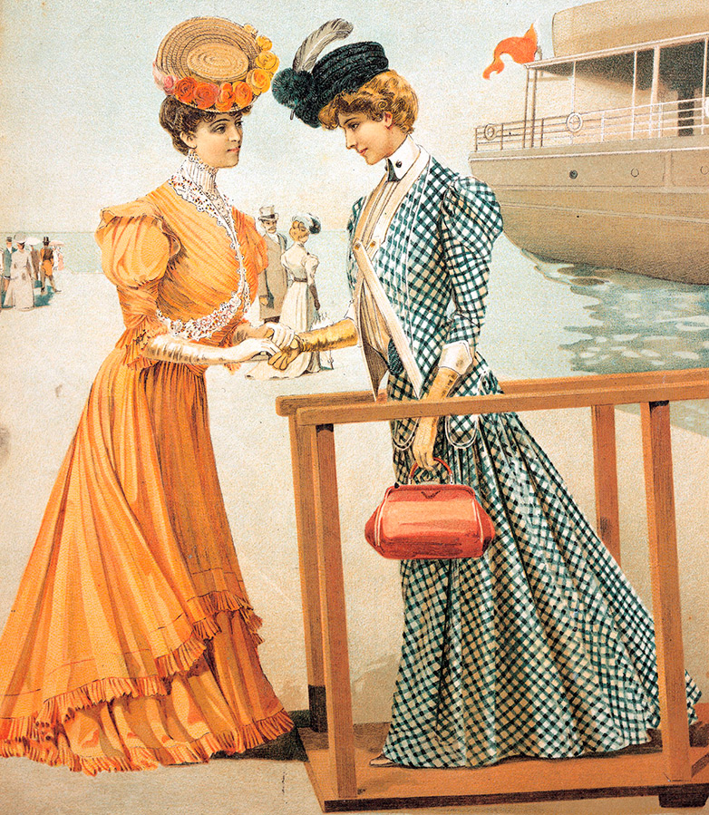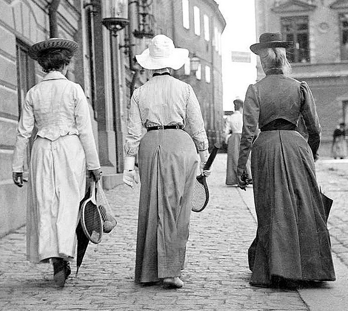 Les accessoires indispensables étaient des bas de soie, que l'on ne pouvait que deviner, et des gants étroits qui ne laissaient même pas une mince bande d'une main nue.La dame Art nouveau était si soigneusement lacée et drapée qu'une petite partie de son bras ou de son cou nu suscitait l'admiration des hommes et provoquait la résolution du mystère de cette personne.