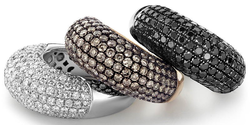 Le pavé de diamants est une sorte de fixation de diamants sur des bagues, des bracelets et des pendentifs, dans laquelle les pierres précieuses sont positionnées de manière à ce que le métal de la jante ne soit pas du tout visible, grâce à quoi des bijoux très luxueux sont obtenus à partir de petits diamants.