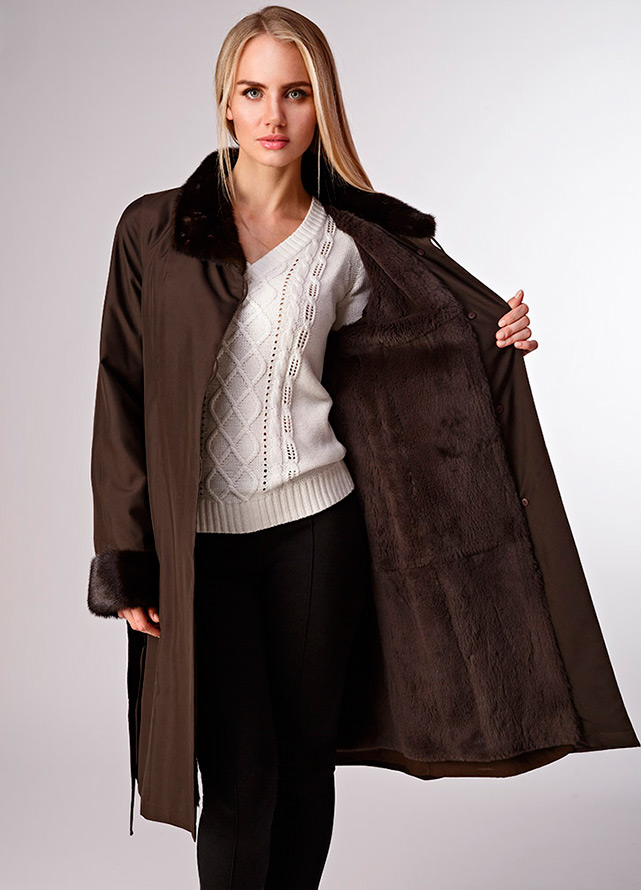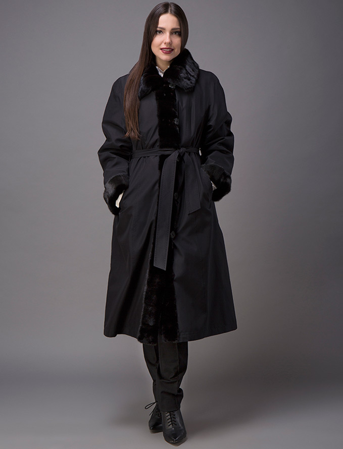 L'idée originale des designers est de compléter la fourrure brillante avec un tissu brillant sur le dessus du produit. En règle générale, pour la saison automne-hiver, un tel tissu est traité d'une manière spéciale pour devenir hydrofuge. La composition même du tissu et son imprégnation rendent le tissu brillant.