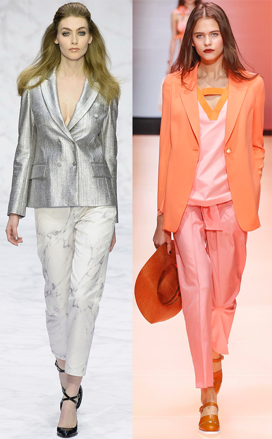 Dans la collection Emporio Armani, le rôle principal est joué par les oranges ensoleillés combinés aux roses, Daks préfère les nuances de gris nobles et l'argent, Mila Schon - les jaunes vifs, les rouges, les bleus, les nuances bleu-gris de Giorgio Armani, les magnifiques pastels Rohmir ...