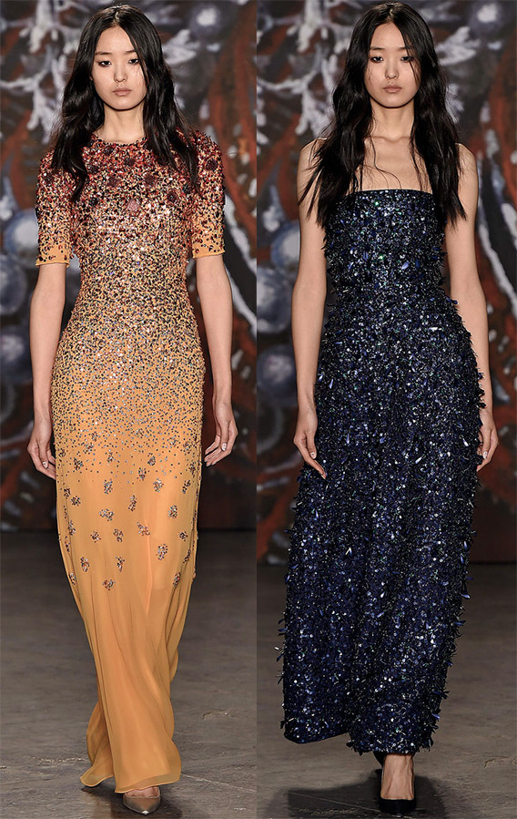 Ensuite, vous pouvez énumérer et énumérer différentes options pour les robes, mais il est préférable de regarder des photos et plus de vidéos de spectacles de collection, car les photos transmettent une petite partie de la beauté de ces robes à paillettes et strass, qui ont l'air vraiment festives et luxueuses .
