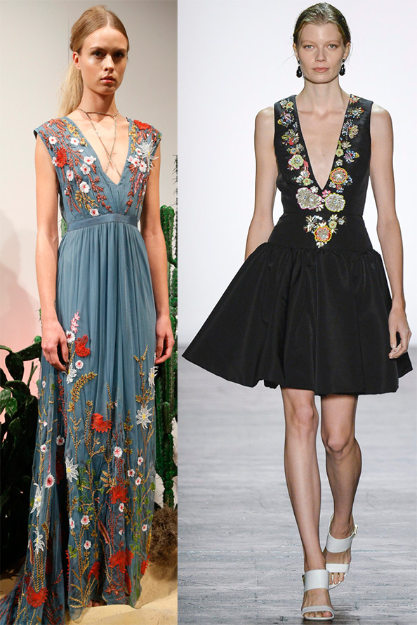 Le décolleté profond en V des collections printemps-été 2026 atteint parfois la ligne de taille. Le décolleté vertigineux attire comme par magie le regard et ne laisse aucune chance de passer inaperçu.