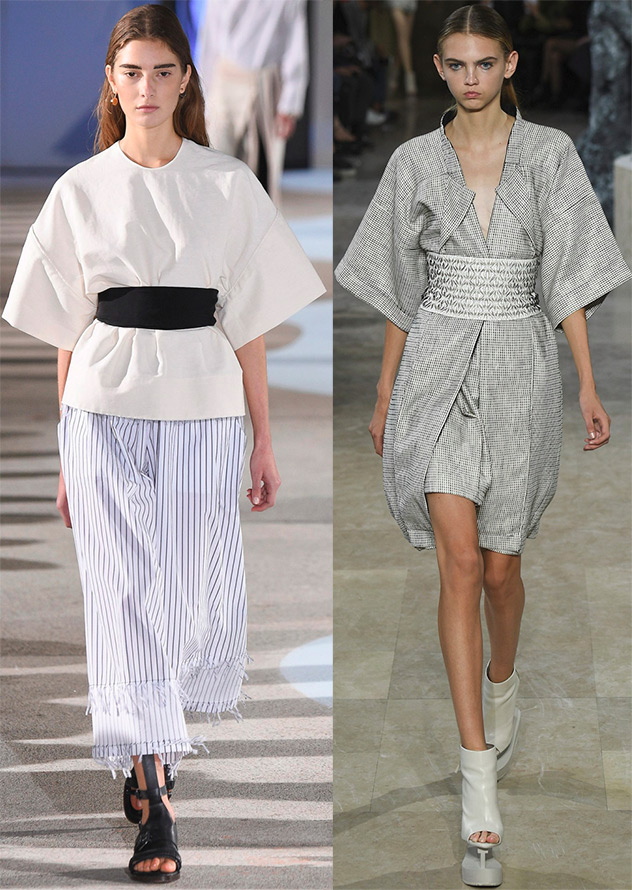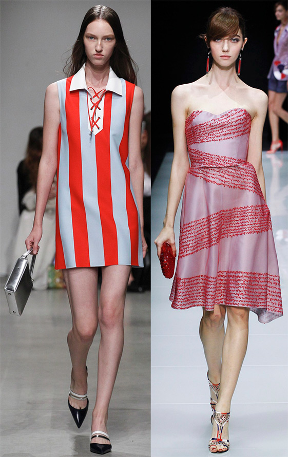 La rayure est présente dans de nombreuses tenues, mais elle est maintenant dirigée sous différents angles et la largeur augmente rapidement.
