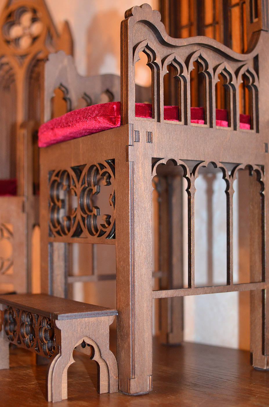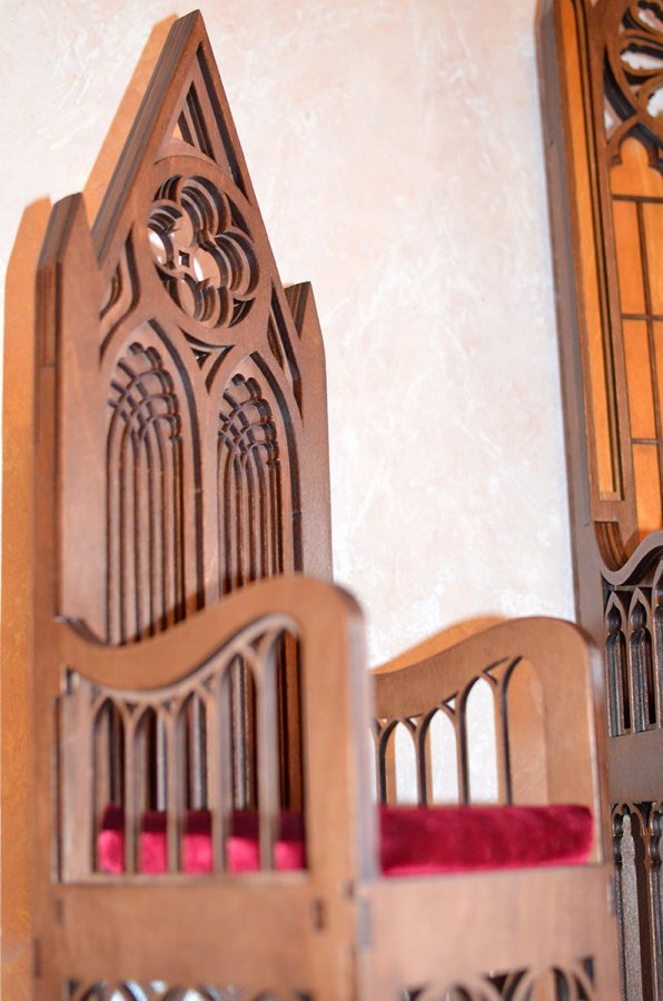 Les chaises pour poupées BJD, même en elles-mêmes, sont une décoration intérieure et peuvent décorer votre maison pas pire que le cristal, la porcelaine et une cruche en argent. Découvrez mes achats récents - deux trônes de style gothique de l'atelier Takumi BJD. Les chaises sont en contreplaqué de 6 et 4 mm selon les motifs de l'auteur, imprégnées de trois couches de lasure hydrofuge et recouvertes de 2 couches de vernis.