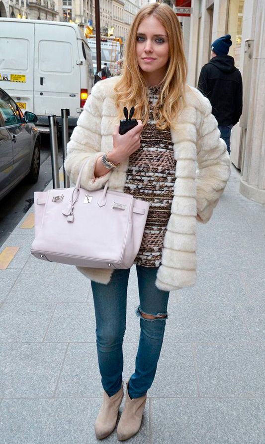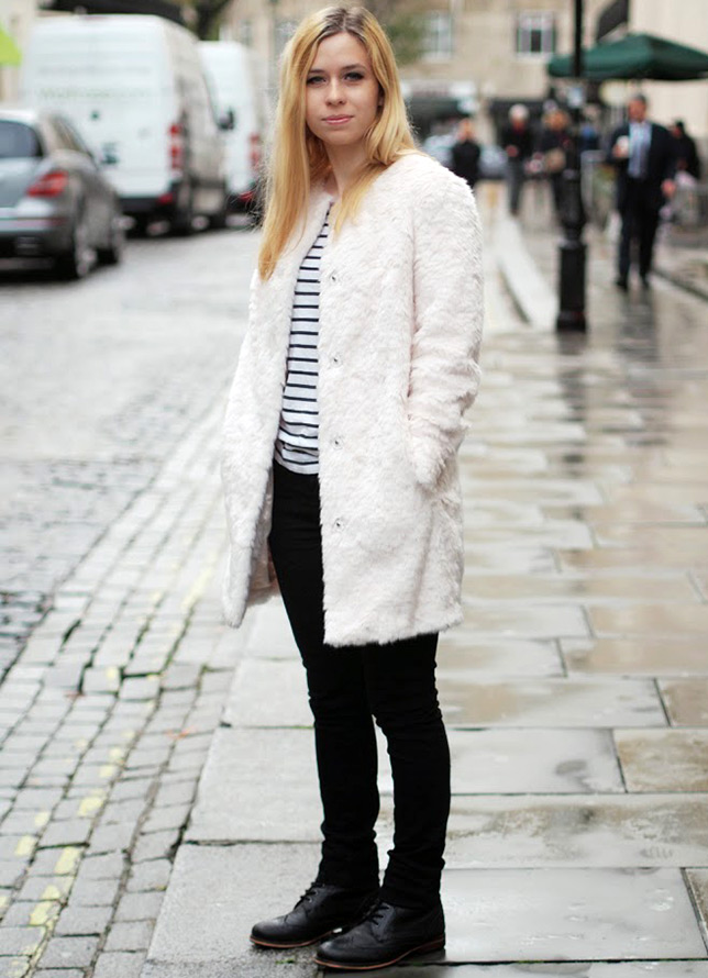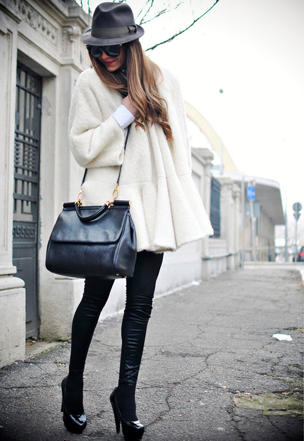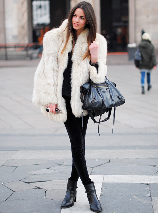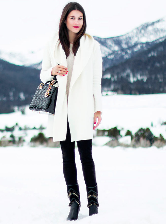 Les manteaux blancs et les manteaux de fourrure blancs ne sont pas les choses les plus pratiques pour la saison froide, car le temps est très changeant, la neige mouillée peut tomber à tout moment et une bouillie de neige sale se forme sur les routes, ce qui menace nos tenues blanches. En général, les choses blanches sont très capricieuses, exigeantes à soigner et augmentent parfois visuellement nos volumes.