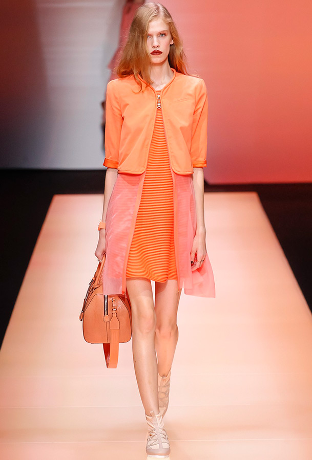 La couleur mandarine est efficace lorsque vous voulez attirer votre regard et impressionner les autres, surtout en contraste avec le bleu ou le blanc. Mais un mandarin joyeux peut aussi prendre un sens auxiliaire dans l'image, lorsqu'il contient 20-30% de l'ensemble, ou créer un accent lumineux lorsqu'il est utilisé pour mettre en évidence quelque chose. Dans ce dernier cas, la couleur de la mandarine prend environ 10%, mais c'est la plus efficace, car elle crée un contraste lumineux. Cela peut être une écharpe, un sac, des gants ou des chaussures.