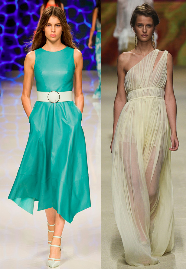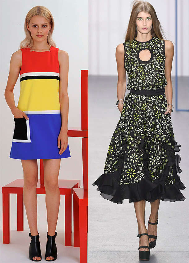 Malgré l'été chaud, la couleur noire reste très demandée par les créateurs et dans notre garde-robe. La géométrie en noir et blanc de la collection montre comment vous pouvez obtenir des formes presque idéales. Lors de l'utilisation de cette échelle, il est nécessaire de prendre en compte tous vos avantages et inconvénients dans la figure, afin de ne pas atteindre un volume excessif. La palette de couleurs vives comprend la couleur mandarine, irisée avec des taches de couleur, le vert. La palette lumineuse comprend les collections d'Idan Cohen, Pamella Roland, Holly Fulton, Paul Smith et bien d'autres.