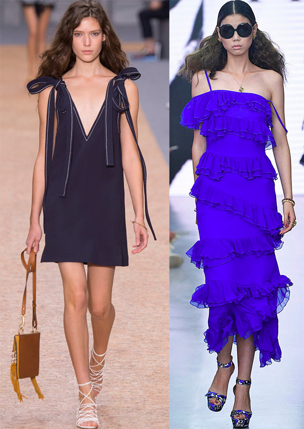 L'une des tendances les plus puissantes de cette saison est la nudité corporelle et en même temps, asymétrie... Combinaisons contrastées de couleurs et de textures, mélange d'imprimés et de tissus, charme vintage, volants, volants, plis, dentelle - tout cela reste sur les podiums, et donc dans nos garde-robes.