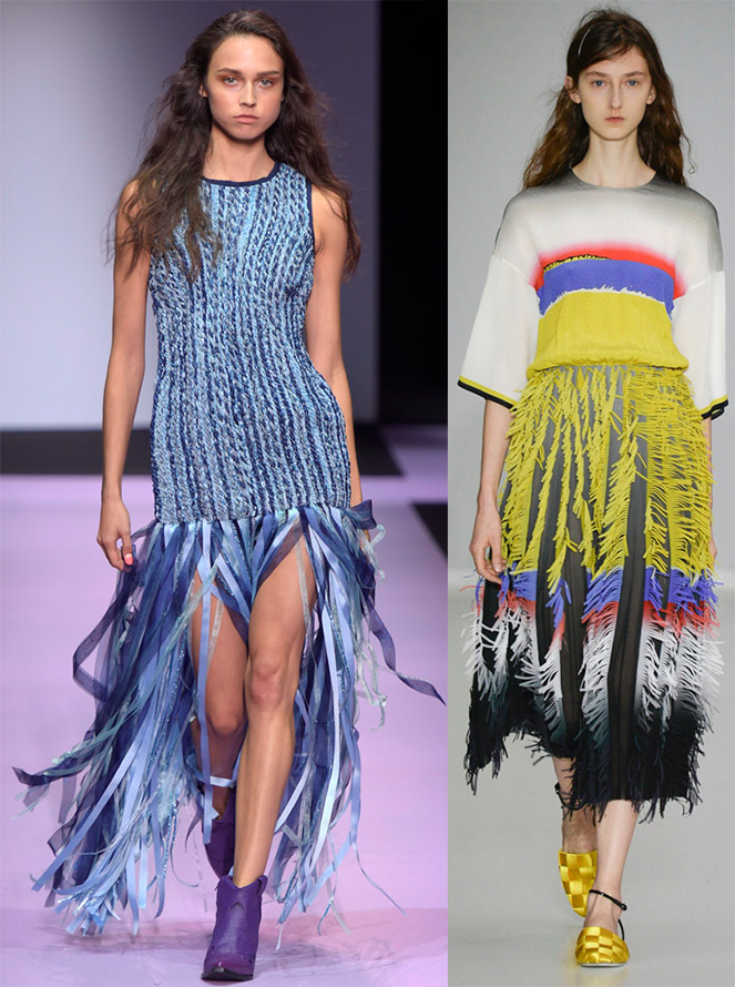 La frange est utilisée dans différentes versions - sous forme de serpentine, tissée avec des perles ou des cristaux.